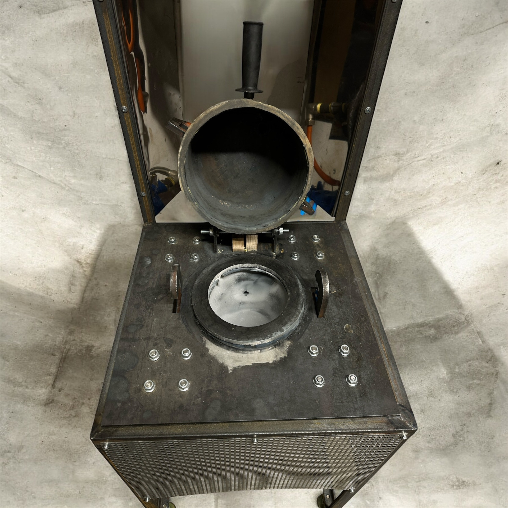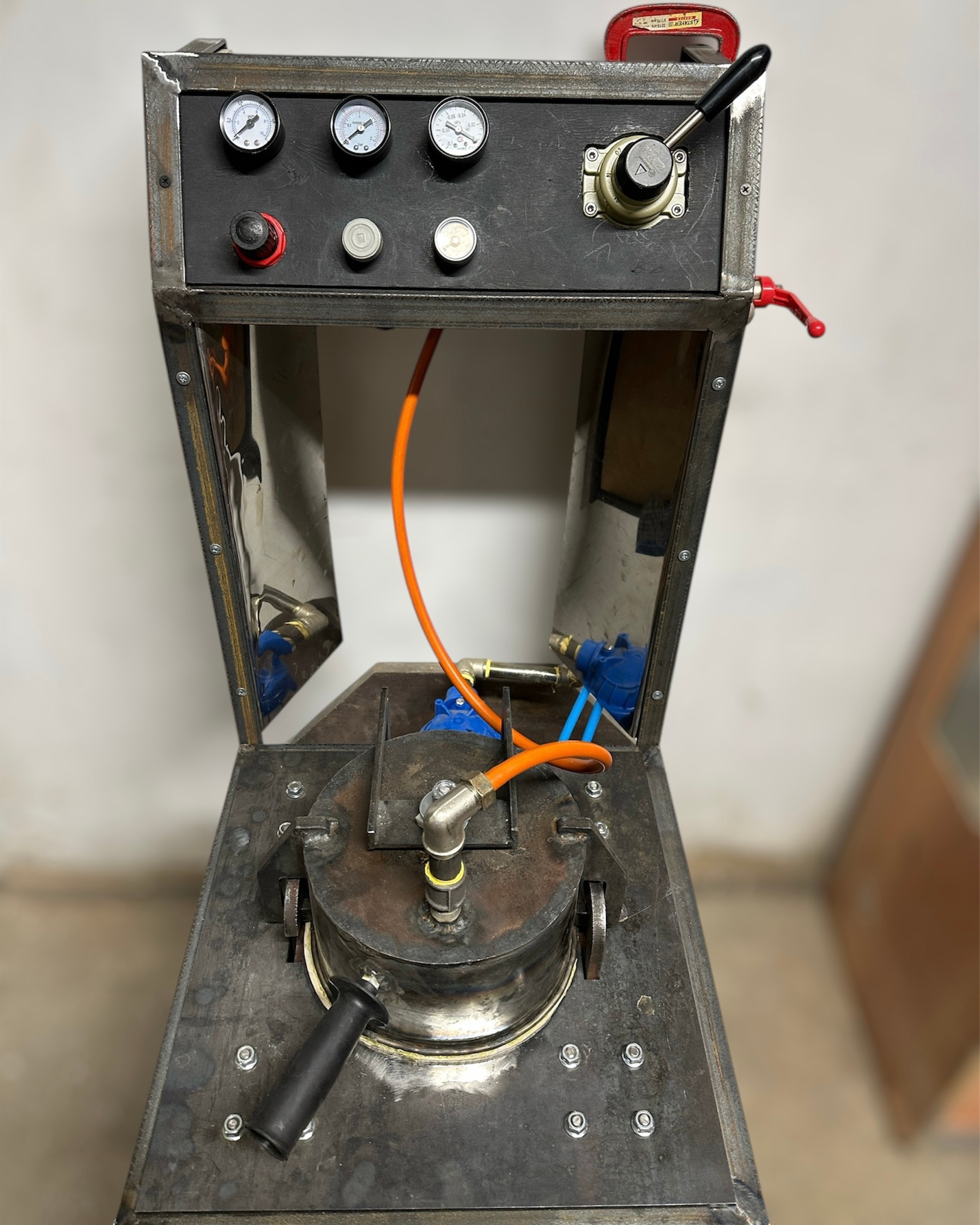 Пневматический прижим и фиксация крышки, автоматическая подача воздуха..